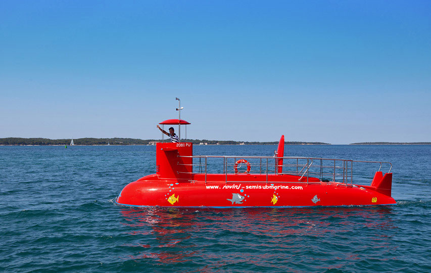 Nazivamo ju polupodmornicom jer je gornji dio uvijek iznad površine mora, dok je doljnji dio 1,5 m uronjen pod vodom. Unutrašnjost je vrlo ugodna jer se pored svakog sjedala nalazi širok prozor kojim se nudi izvanredno dobar pogled u podmorje. Stakla polupodmornice vizualno približavaju, stoga imate dojam da je sve puno bliže od onoga što zaista jest.